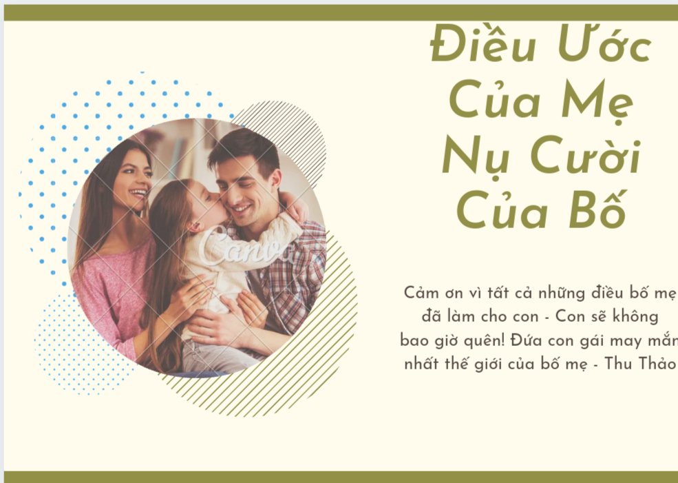 Bố mẹ, bố mẹ hãy luôn mạnh khỏe và bình an nhé. Bố mẹ đã chở che cho con cả nửa quãng đường rồi, quãng đường còn lại, hãy để con bảo vệ bố mẹ. Con vẫn đang nỗ lực từng ngày một, con sợ bố mẹ già đi.